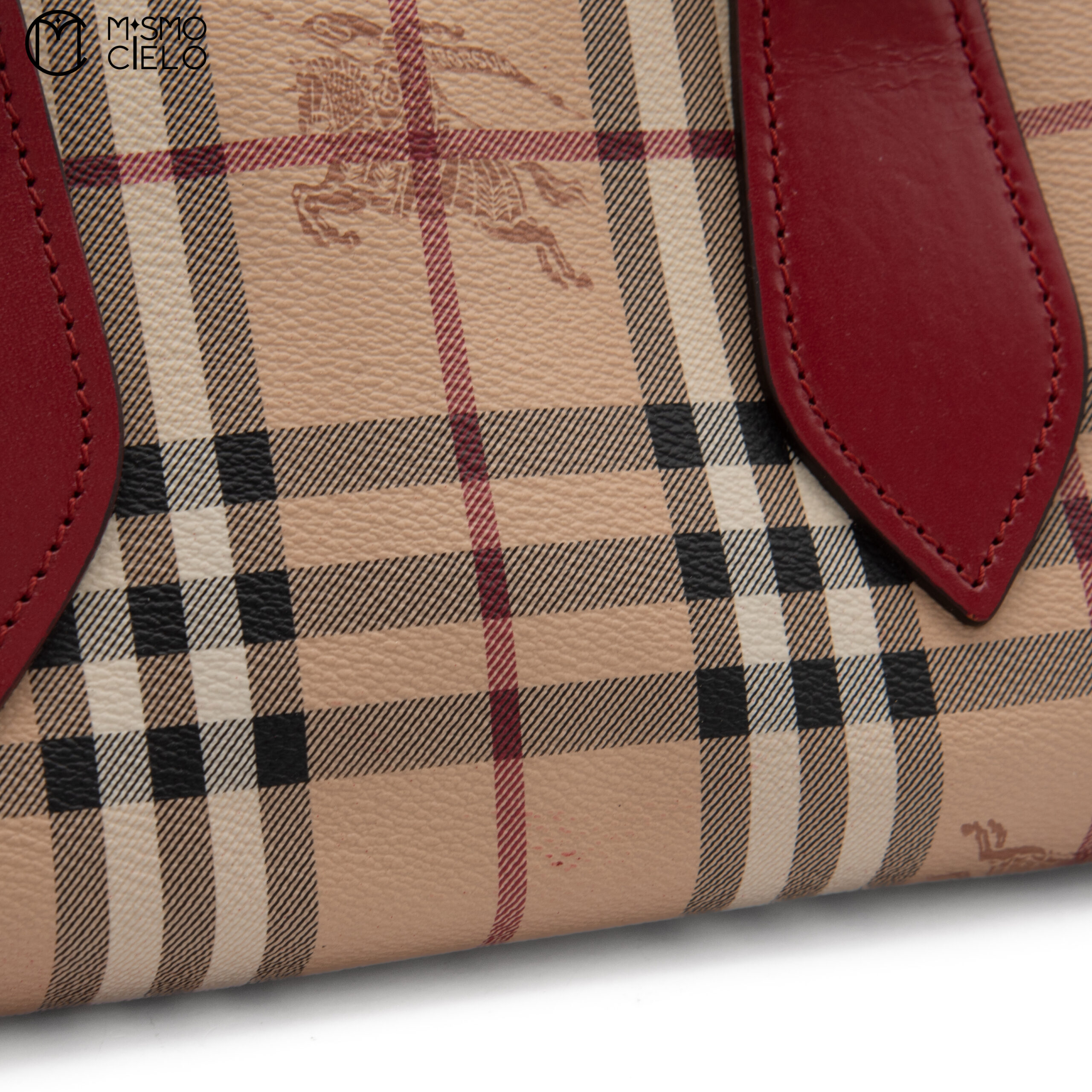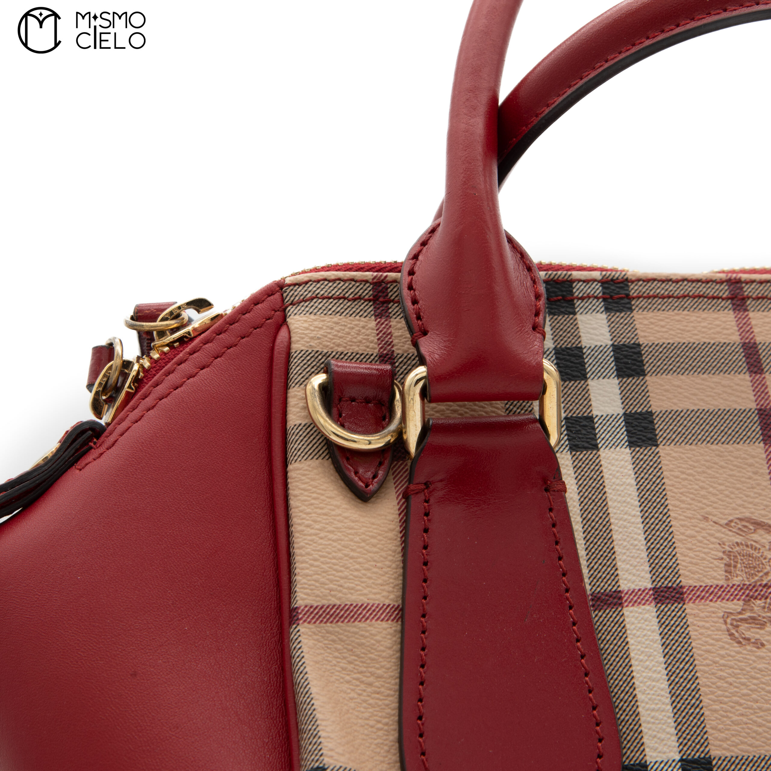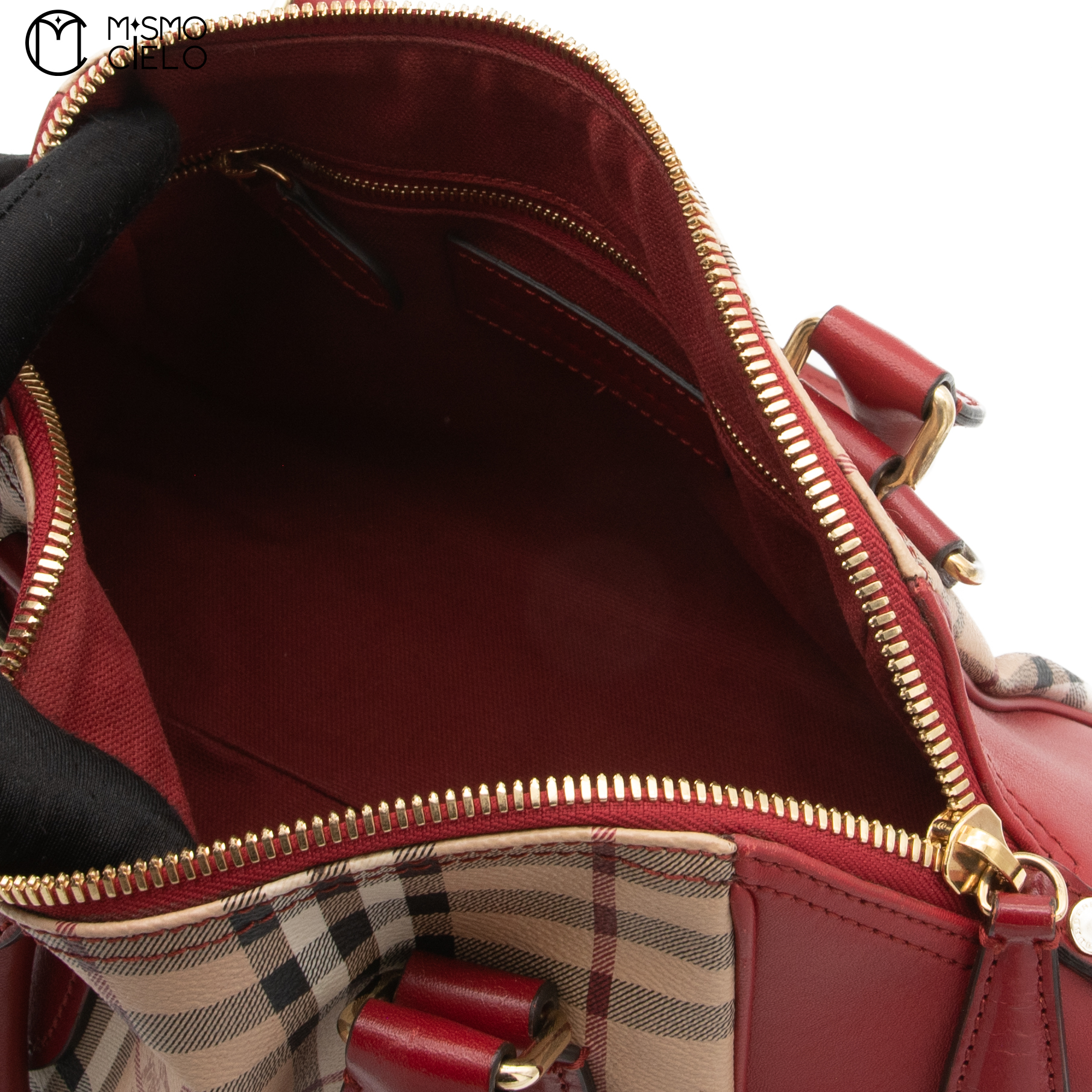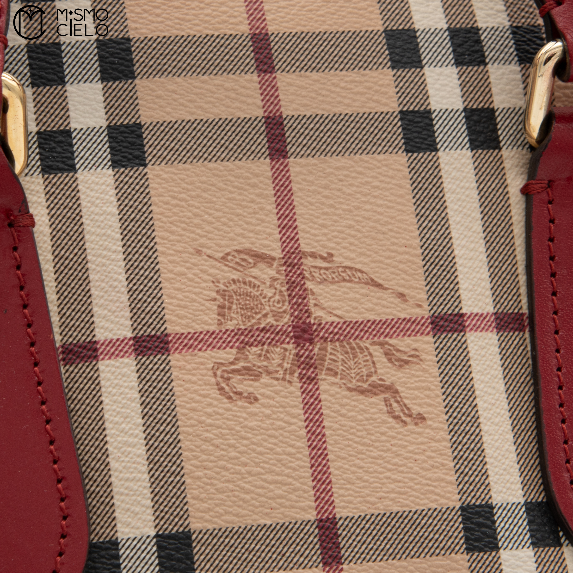 BURBERRY Red and Nova Check Shadow Horse Handbag
