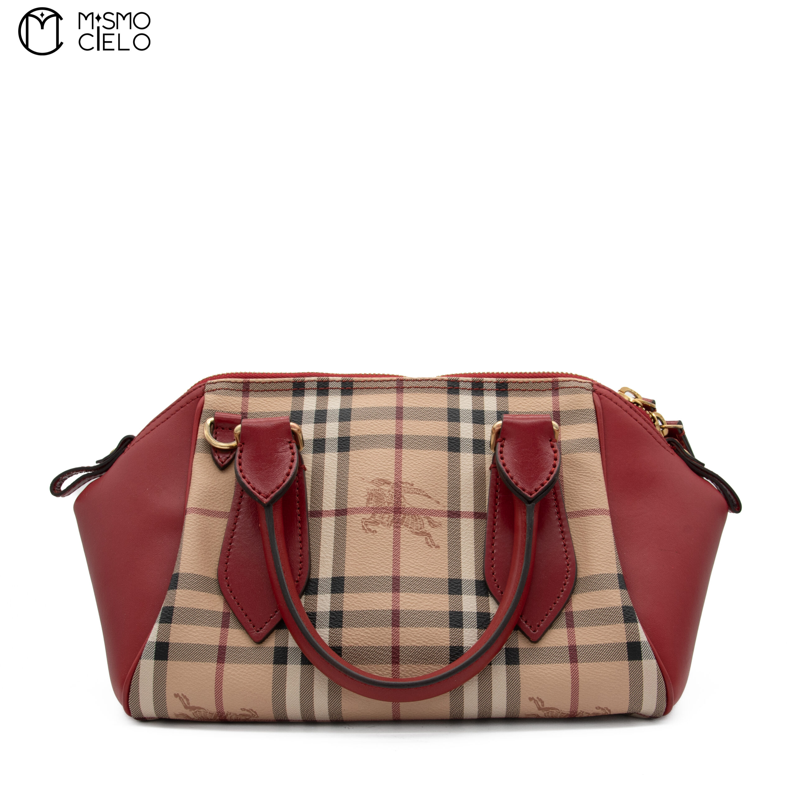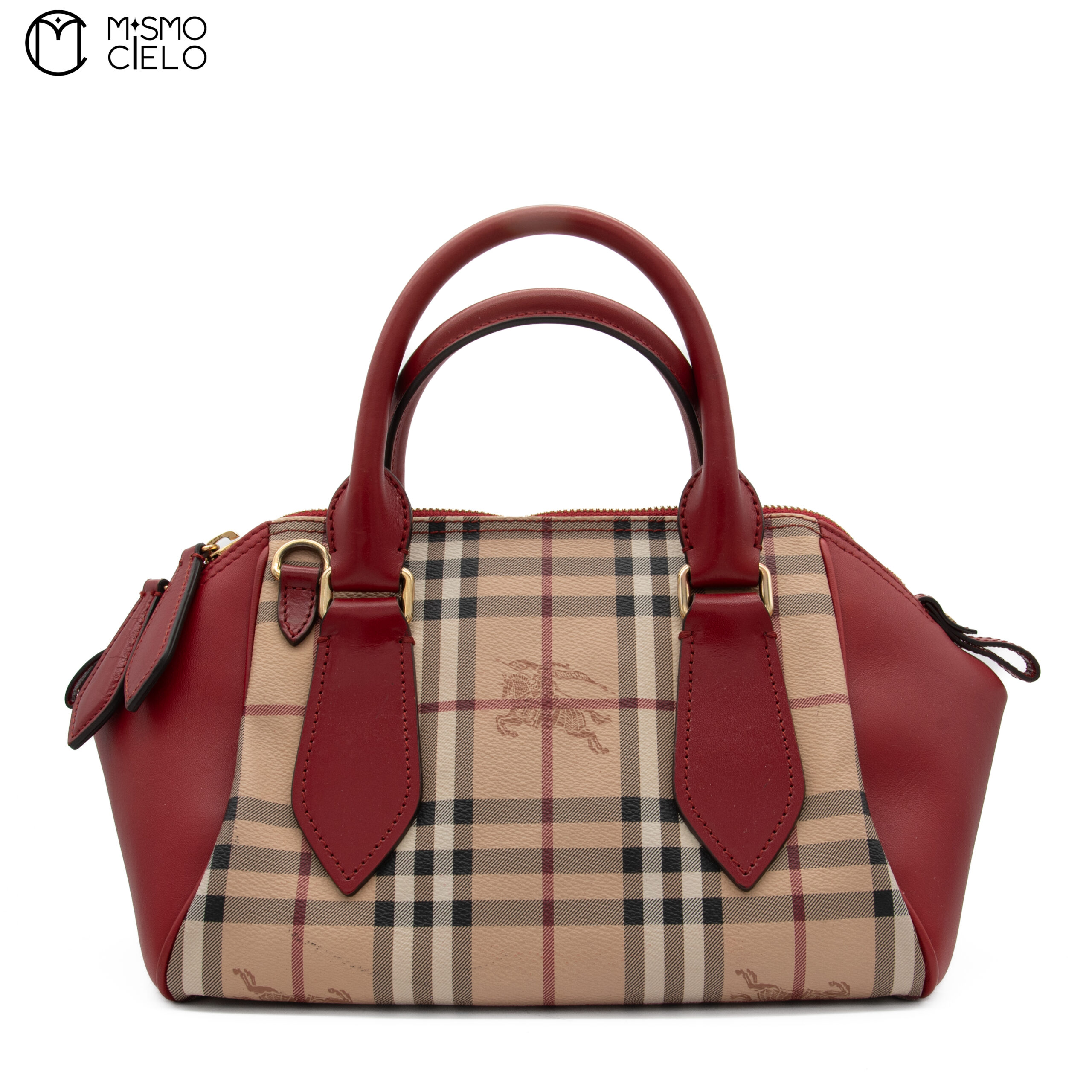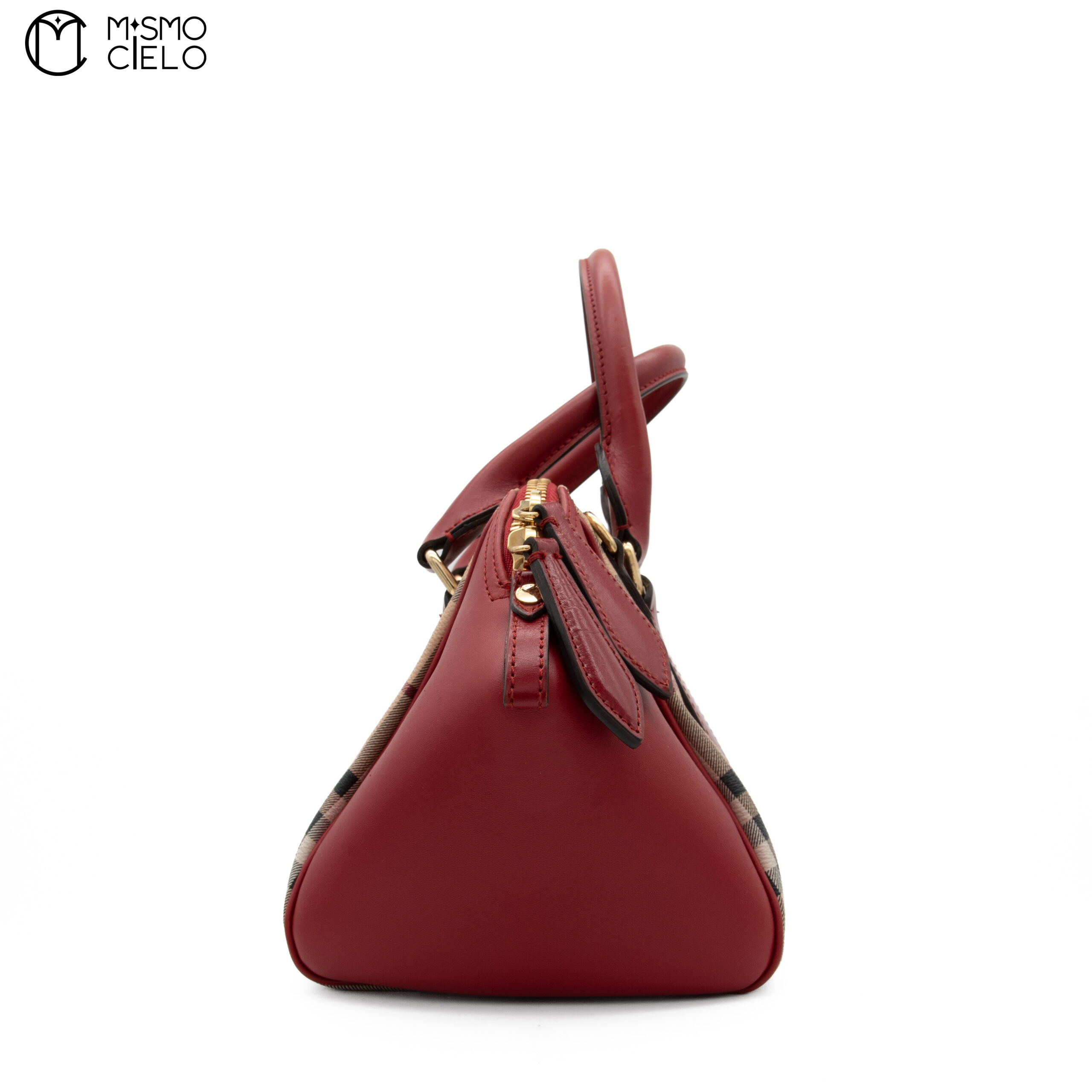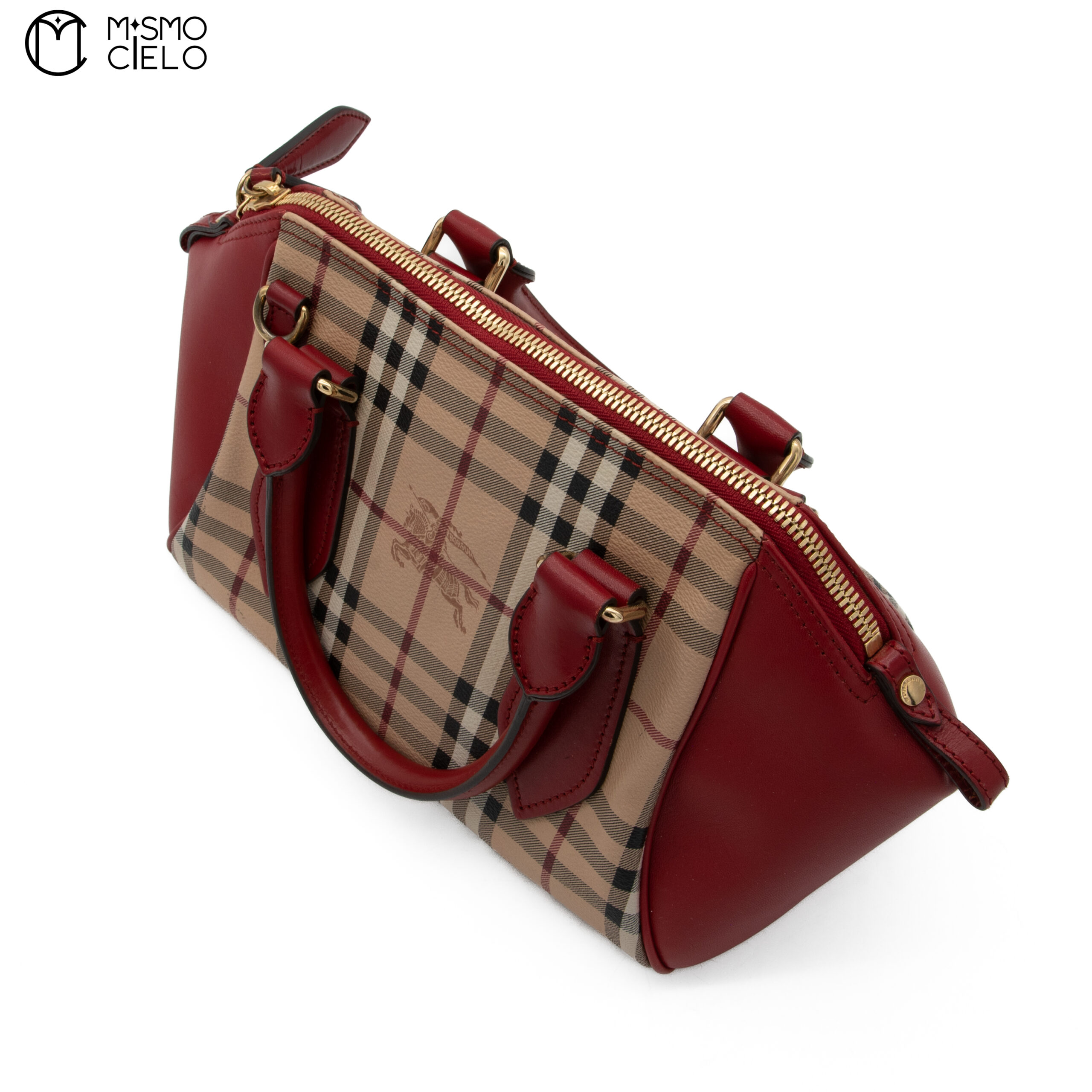 BURBERRY Red and Nova Check Shadow Horse Handbag
