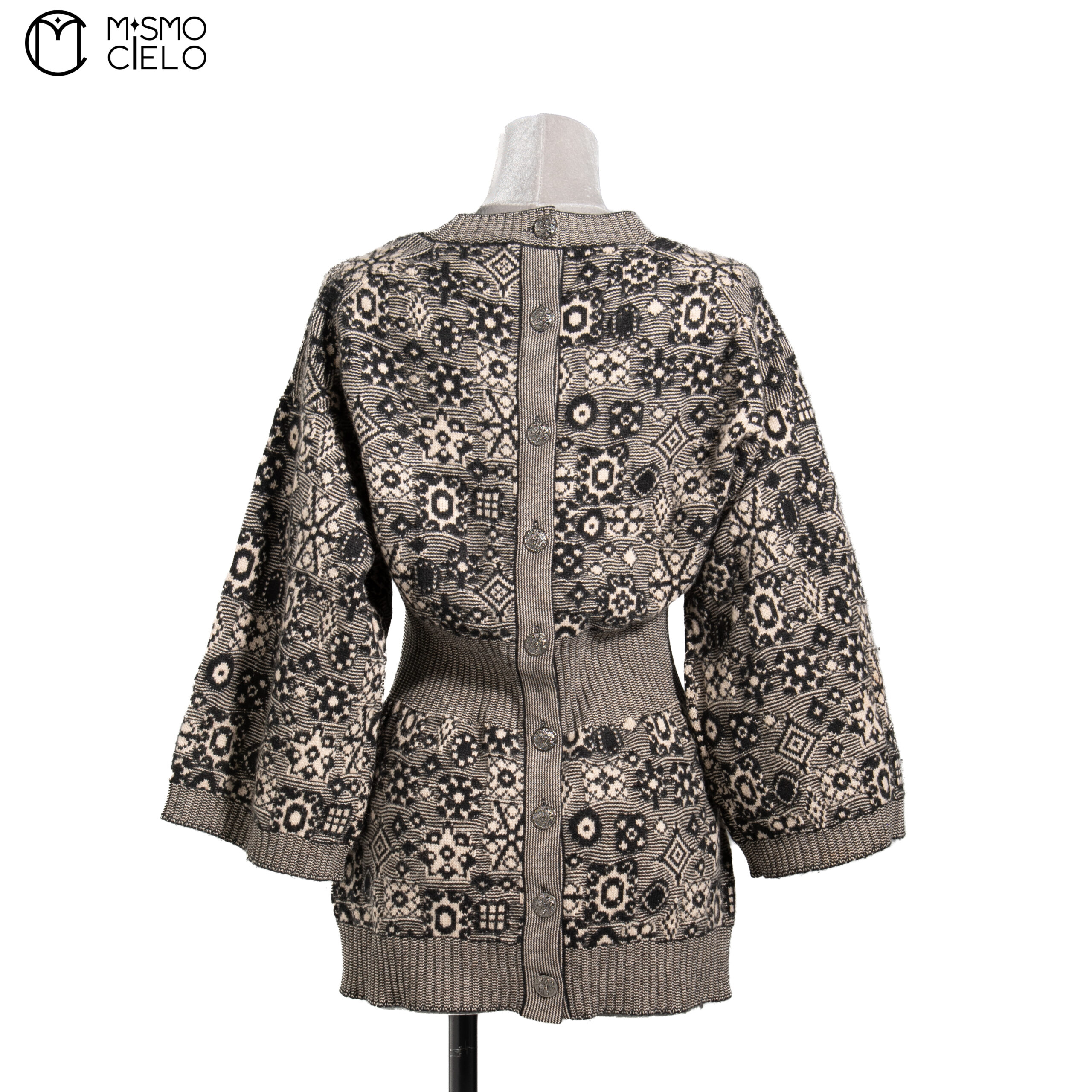 CHANEL White And Black Mini Cashmere Jacquard Camellia *