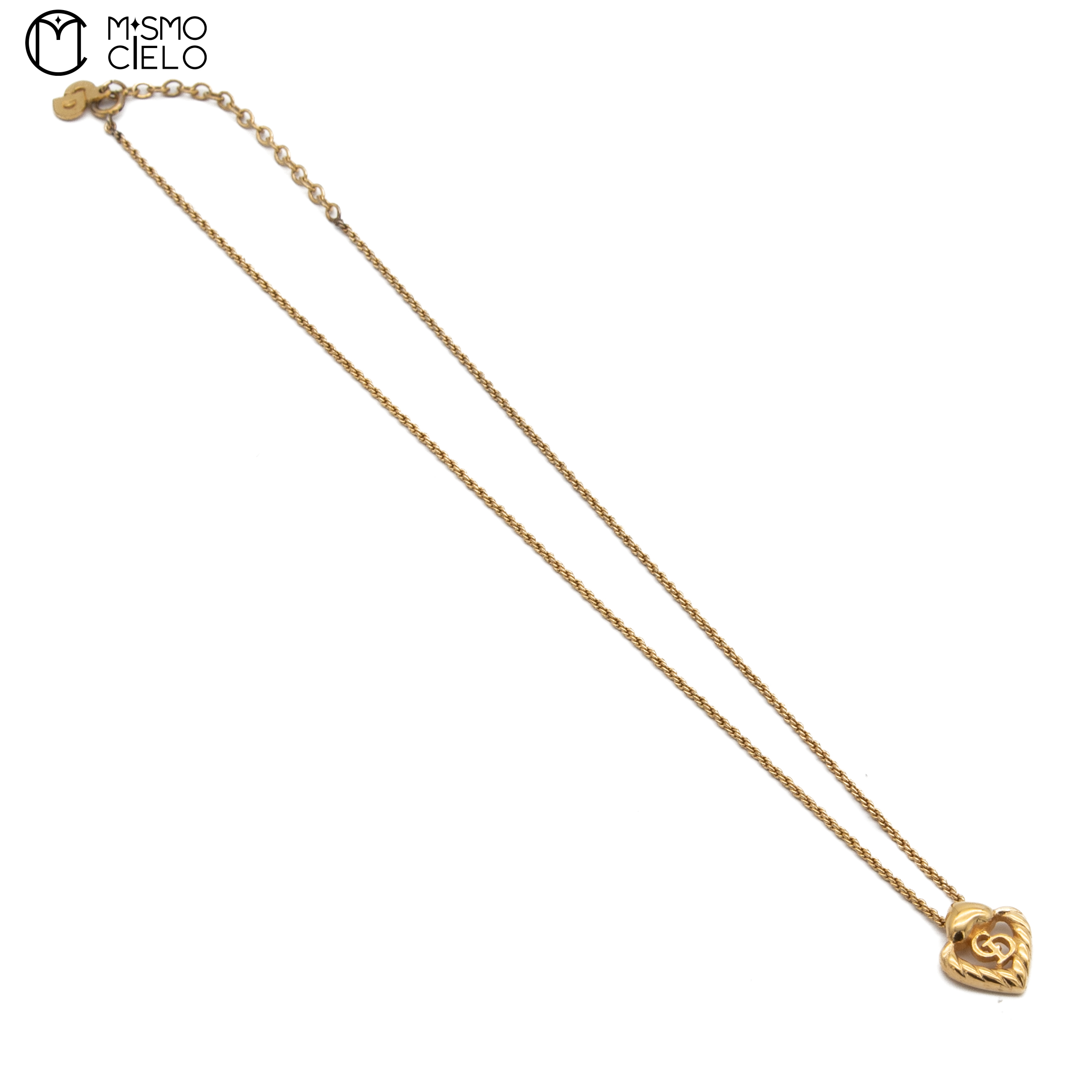 CHRISTIAN DIOR Gold CD logo Heart Pendant 44 cm