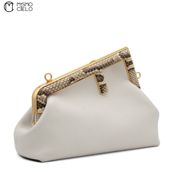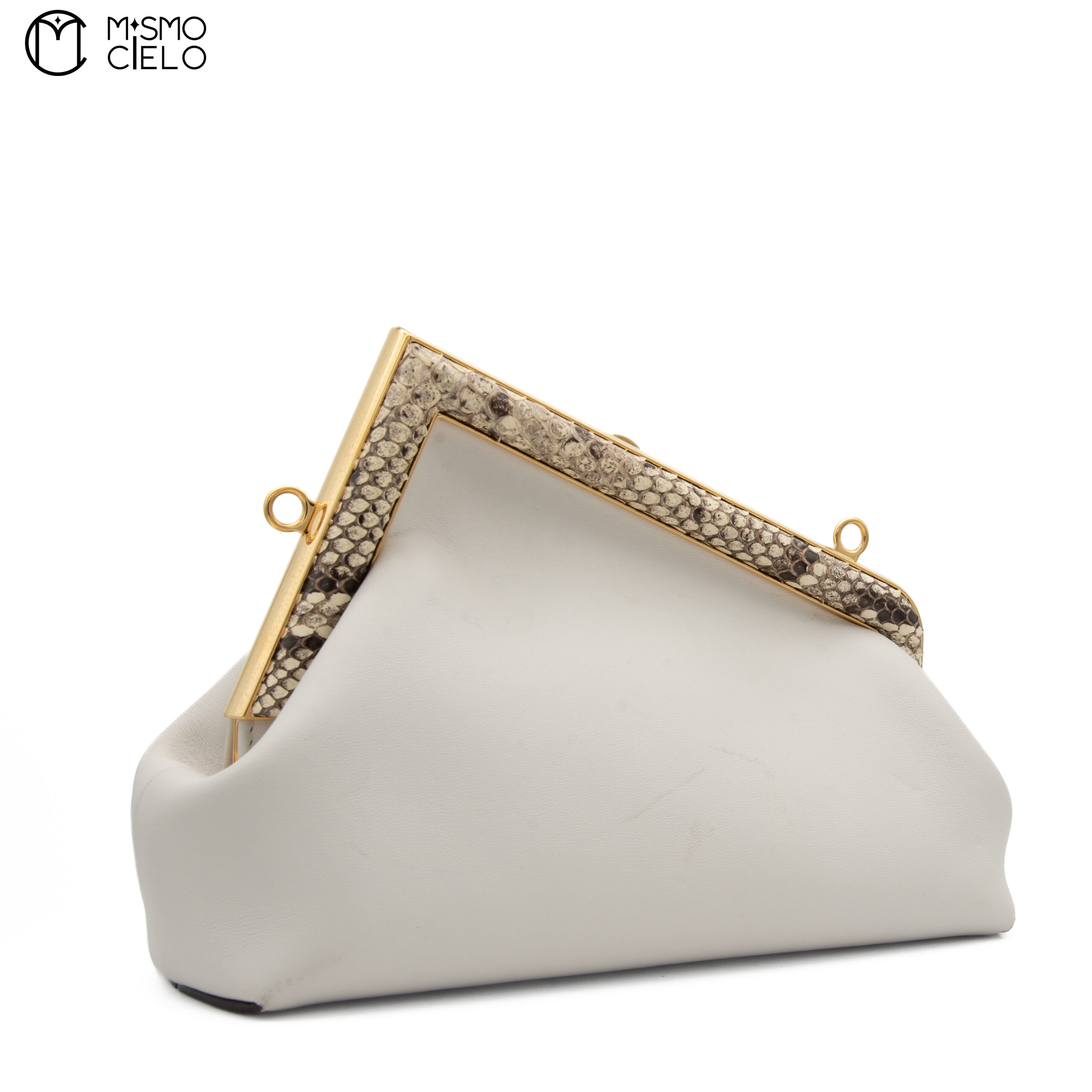 FENDI Porchette Fendi First Lamb and Python White Shoulder Bag