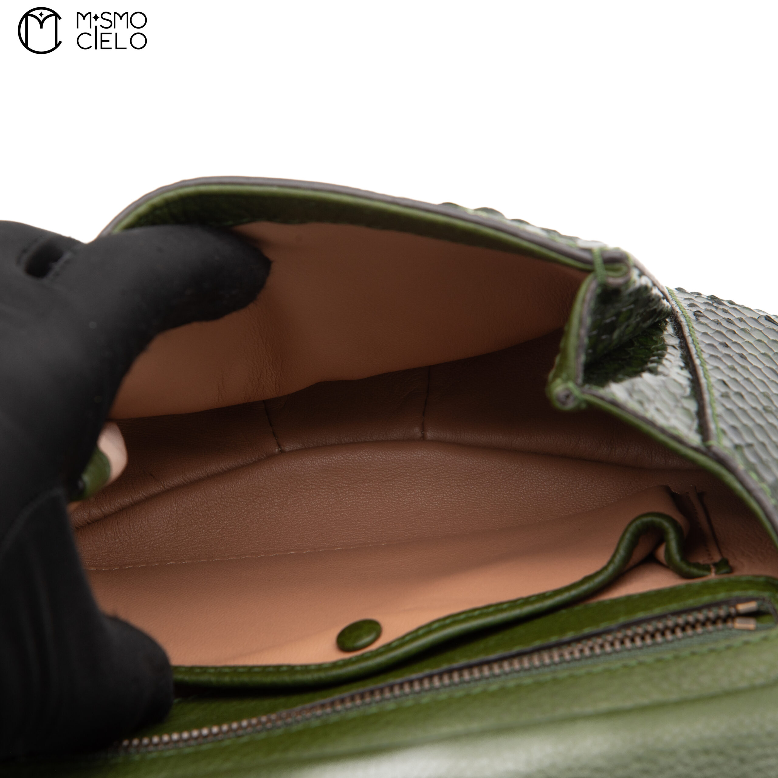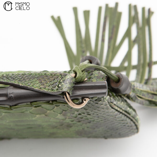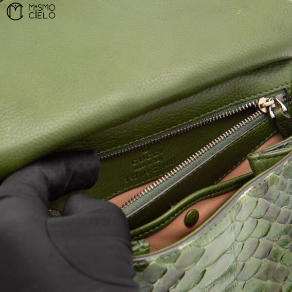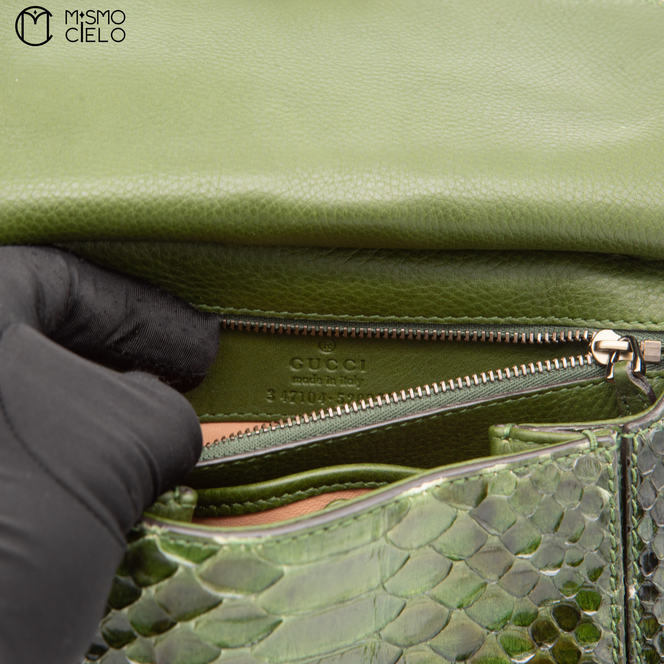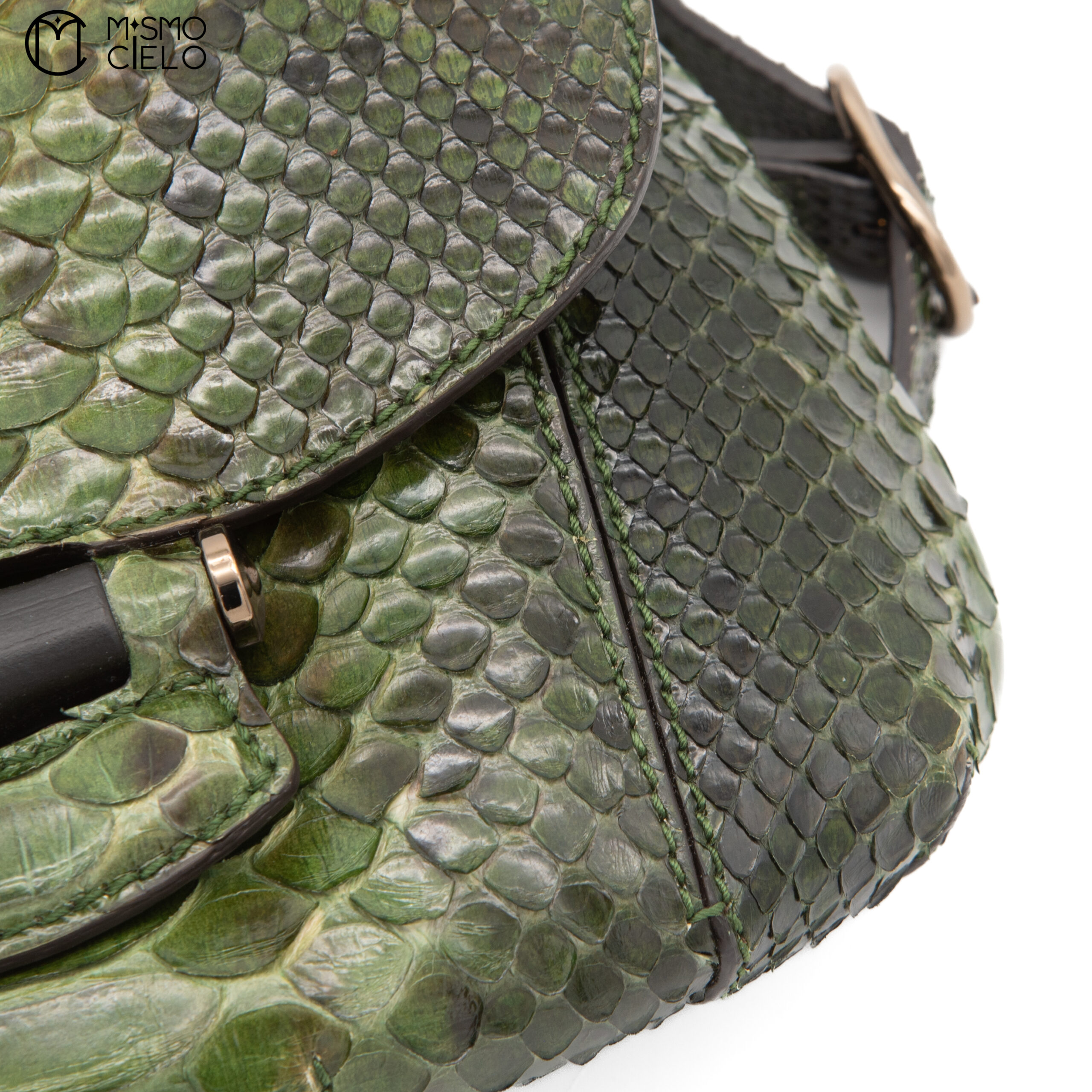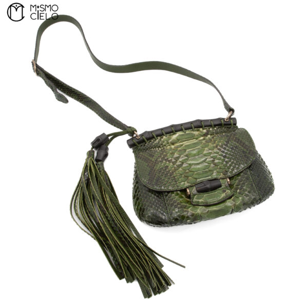 GUCCI Bamboo Python Nouveau Fringe Shoulder Bag In Green #