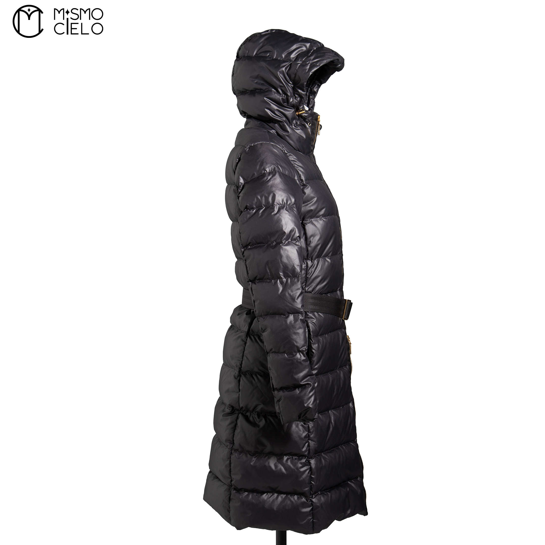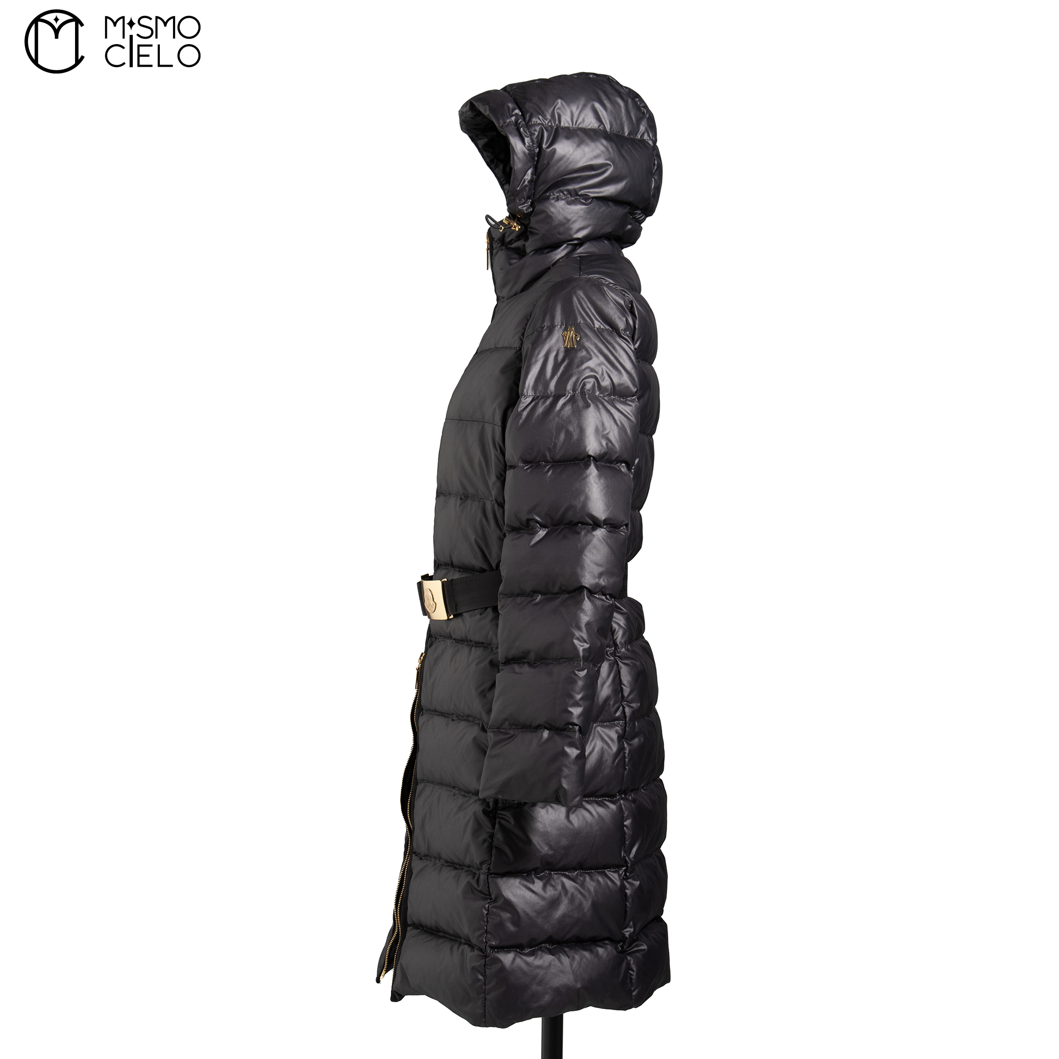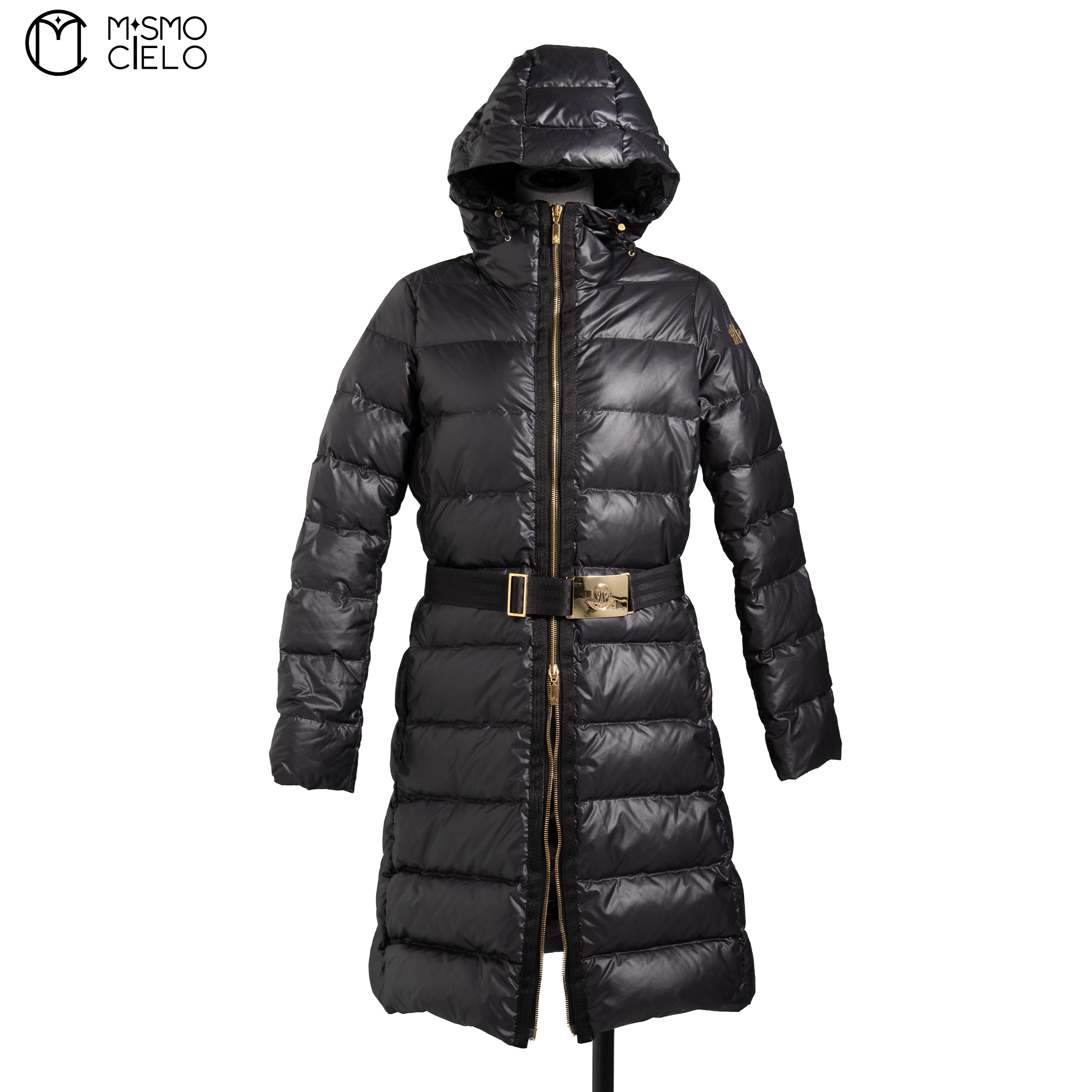 MONCLER Black and Gold Long Down Jacket Size 0