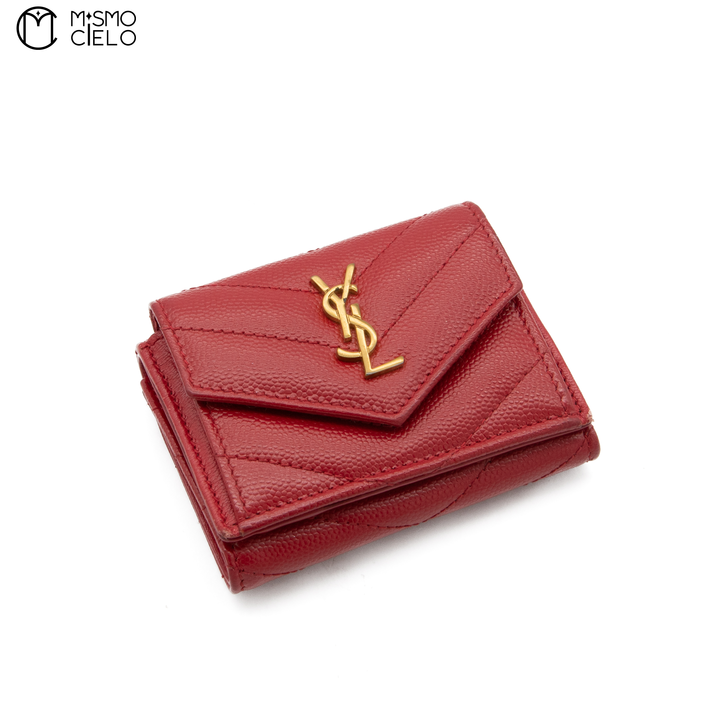 YVES SAINT LAURENT Mini Folding Wallet Red and Gold